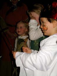 The division between the spiritual and material worlds softened this evening and the magic was powerful over Capital E; in Wellington’s Civic Square. There was a strong sense that King Arthur was amongst us as we journeyed into the medieval castle. It was with trepidation that we ventured into the Medieval Horror Hall and it wasn’t long (maybe a mere ten footsteps) before foot-soldier Sophie (who wasn’t actually on foot, but in her mother’s arms!) started shaking and said, ‘Scared! Scared!’. Charlotte, the brave, fearless warrior of a four-year old that she now is, said, ‘Mummy, I’m not scared, but we’ll go back for Sophie’s sake.’. How very noble.