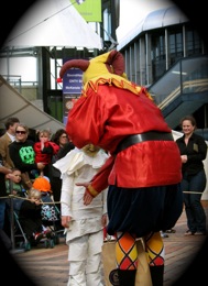All the magic was leaving me feeling a little light-headed so we left the castle for some medieval entertainment in the fresh air. Charlotte has read much about castles of old and since our visit to England she’s been even more intrigued. When we emerged into the fresh air she was literally blown-away in a time-machine when she saw a Jester performing in Civic Square! Her face in this photograph speaks volumes!