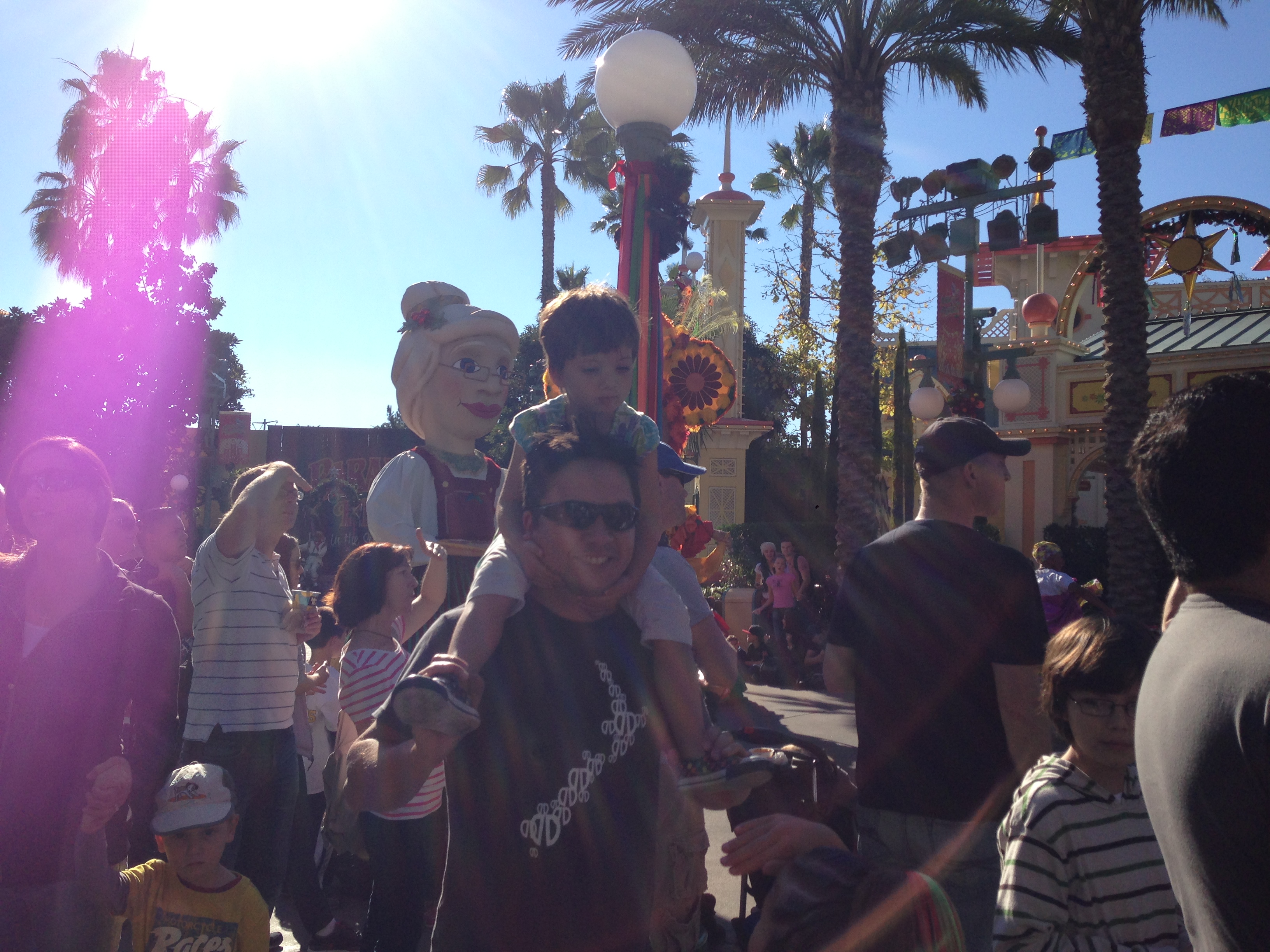 Alice riding on her Daddy’s shoulders
